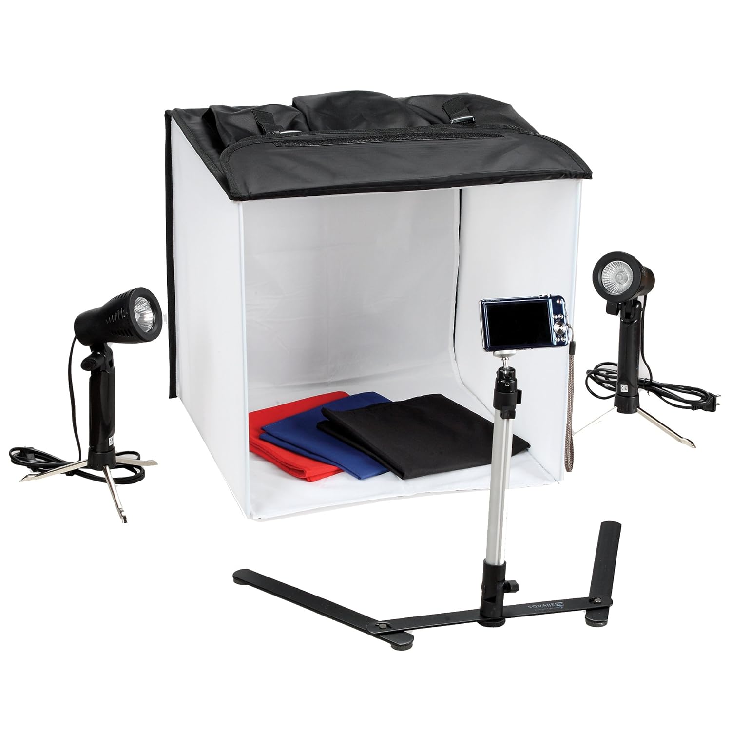 It has been a fun but very technical morning for me so far. The Amazon fairy delivered my Light box equipment yesterday, so I have been playing around with it, and it got me thinking. When I first started Scrap booking in 2006(my Jr year of High School), it was very low tech (OK really no-tech) It was scissors (you know the ones with all the frilly edges..) construction paper, and overly themed embellishments. I was not even using basic design concepts, let alone any gadgets or machines to enhance it. Jump forward to present day, We have our beloved die-cutting machines and embossing tools, and thankfully for me, My taste in design has improved dramatically. I was finding that I would fall in love with these projects I have created, and when I photographed them to share with all of you, I just couldn't capture them in a way that I was happy with. I started looking on Pinterest for tips and tricks to help my very basic photography skills. I decided that the best investment for me would be a light box, and I was right! I purchased the "Square Perfect 3085 SP200 Studio in a box" shown below.